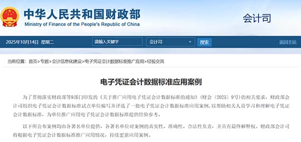 據(jù)石家莊用友了解今年5月,財(cái)政部等九部門聯(lián)合發(fā)布《關(guān)于推廣應(yīng)用電子憑證會(huì)計(jì)數(shù)據(jù)標(biāo)準(zhǔn)的通知》,正式宣告電子憑證會(huì)計(jì)數(shù)據(jù)標(biāo)準(zhǔn)將在全國范圍內(nèi)推廣應(yīng)用。近日,財(cái)政部會(huì)計(jì)司公布了首批應(yīng)用案例,為各單位學(xué)習(xí)理解和應(yīng)用新標(biāo)準(zhǔn)提供了實(shí)踐參考。這標(biāo)志著我國財(cái)稅無紙化進(jìn)程進(jìn)入全面加速階段。