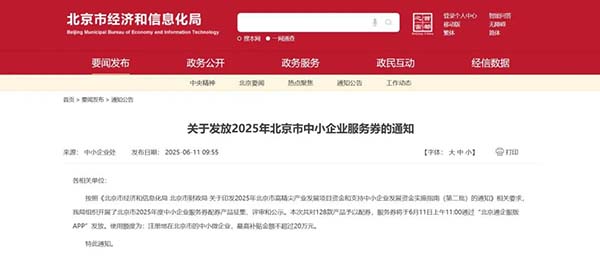 為進一步降低中小企業(yè)創(chuàng)新發(fā)展成本,滿足日益增長的服務需求,北京市經濟和信息化局近日宣布補充2025年度北京市中小企業(yè)服務券供給額度,服務券將持續(xù)發(fā)放至9月份。