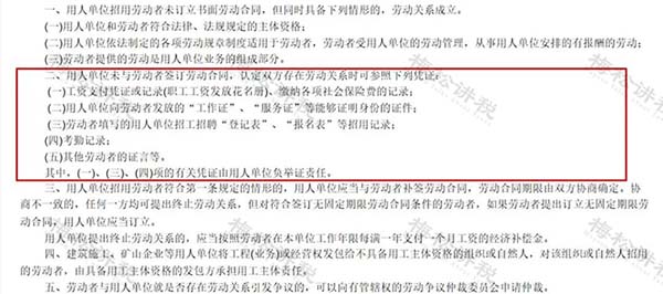 實(shí)務(wù)中,有些用人單位會以沒有簽訂勞動合同為由拒絕為職工繳納社保,豈不知,勞動關(guān)系的確定可不僅僅取決于一紙合同,只要有充分的證據(jù)證明個人與單位之間存在勞動關(guān)系,社保就必須得交!具體規(guī)定看下圖: