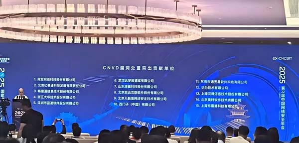 據(jù)石家莊用友軟件了解,9月16日,在2025年國家網(wǎng)絡(luò)安全宣傳周期間,第22屆中國網(wǎng)絡(luò)安全年會于昆明滇池國際會展中心隆重開幕。會上,國家計算機網(wǎng)絡(luò)應(yīng)急技術(shù)處理協(xié)調(diào)中心正式公布了“2024年度國家信息安全漏洞共享平臺(CNVD)優(yōu)秀支撐單位”名單。
