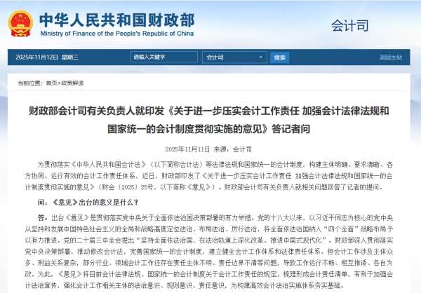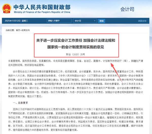 財(cái)政部終于出手了!發(fā)布《關(guān)于進(jìn)一步壓實(shí)會(huì)計(jì)工作責(zé)任 加強(qiáng)會(huì)計(jì)法律法規(guī)和國家統(tǒng)一的會(huì)計(jì)制度貫徹實(shí)施的意見》(下稱《意見》)。老板、會(huì)計(jì)、軟件商全覆蓋!帶你劃重點(diǎn),再不看就晚了!趕緊跟著小編一起來看看!