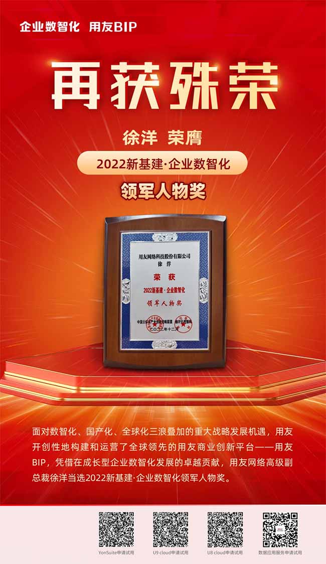 今年1月,國務(wù)院印發(fā)的《“十四五”數(shù)字經(jīng)濟(jì)發(fā)展規(guī)劃》明確提出,到2025年,數(shù)字經(jīng)濟(jì)核心產(chǎn)業(yè)增加值占國內(nèi)生產(chǎn)總值比重達(dá)到10%;展望2035年,力爭形成統(tǒng)一公平、競爭有序、成熟完備的數(shù)字經(jīng)濟(jì)現(xiàn)代市場體系,數(shù)字經(jīng)濟(jì)發(fā)展水平位居世界前列。依托國家政策紅利,面對數(shù)智化、國產(chǎn)化、全球化三浪疊加的重大戰(zhàn)略發(fā)展機(jī)遇,用友開創(chuàng)性地構(gòu)建和運營了全球領(lǐng)先的用友商業(yè)創(chuàng)新平臺——用友BIP,憑借在成長型企業(yè)數(shù)智化發(fā)展的卓越貢獻(xiàn),用友網(wǎng)絡(luò)高級副總裁徐洋當(dāng)選2022新基建·企業(yè)數(shù)智化領(lǐng)軍人物獎。